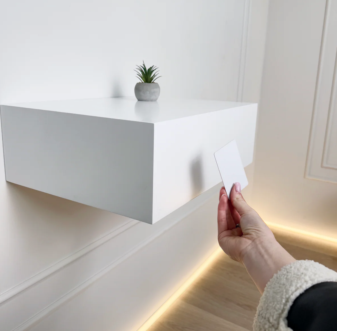 Conçus pour un accès sans effort, nos compartiments cachés sont équipés d’un système de verrouillage NFC. Approchez simplement votre carte NFC (fournie) de la serrure : le compartiment s’ouvre instantanément, pour un accès rapide tout en gardant vos objets parfaitement protégés.